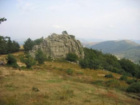At the town limit of Ferrières. On the Col des 4 Vios, after the RD 122 in the direction of St Pierreville then towards the area called Senoulis, the rock formation called the rocher du Bourboulas is visible. The marker is attached to the rocks.