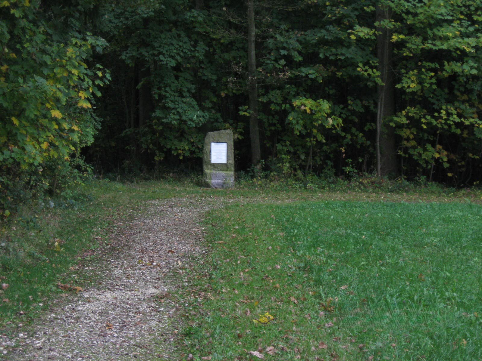The site is on the southern outskirts of the Pfaffenhofen an der Roth, about 1.1 km southeast of the Pfaffenhofen an der Roth town hall. The memorial is situated between a residential neighborhood and a forested area, with walking paths providing access from the nearby homes. Source of photo: Doug Haggan