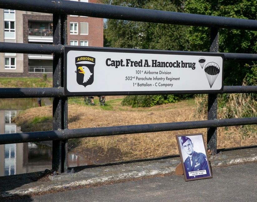 The site includes one memorial naming a bridge in honor of an officer of the 502nd Parachute Infantry Regiment who took the bridge during Operation Market Garden.
