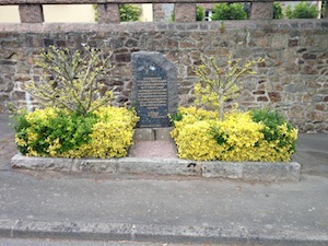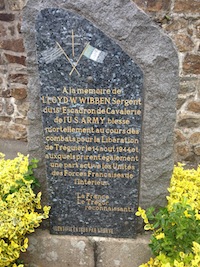 A pleasant road in Tréguier Brittany that has a monument on its side to honor an American soldier killed in the liberation of the town.