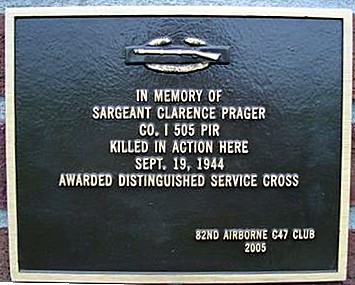 A small plaque commemorates Sergeant Clarence Prager, who was originally buried in the adjoining field; he was awarded the DSC for his actions here in 1944.