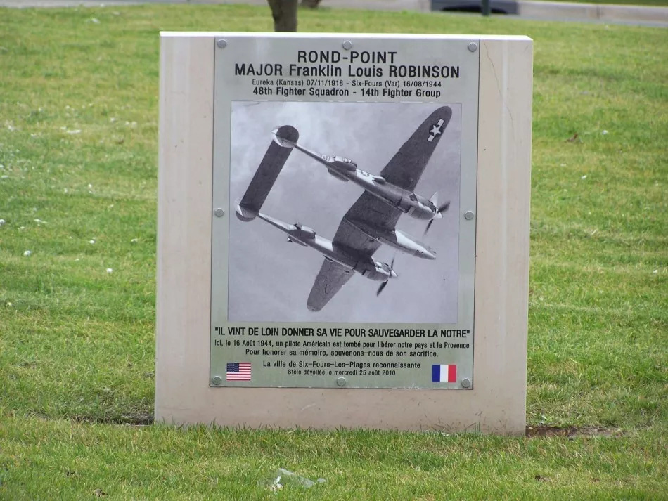 The roundabout in Six-Fours-les-Plages contains a memorial to a US aviator.