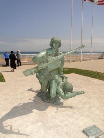 On the Vierville Draw, the monument is located near the beach where the D517 curves to run along the coast. It is just west of the large German bunker and just across the street from Hotel du Casino. Statue The green, metallic statue commemorates the 29th Infantry Division, especially the 116th Infantry Regimental Combat Team who stormed Omaha Beach on D-Day in the beginning of the liberation of Europe. The statue depicts a soldier carrying his rifle and another soldier while running on the beach.