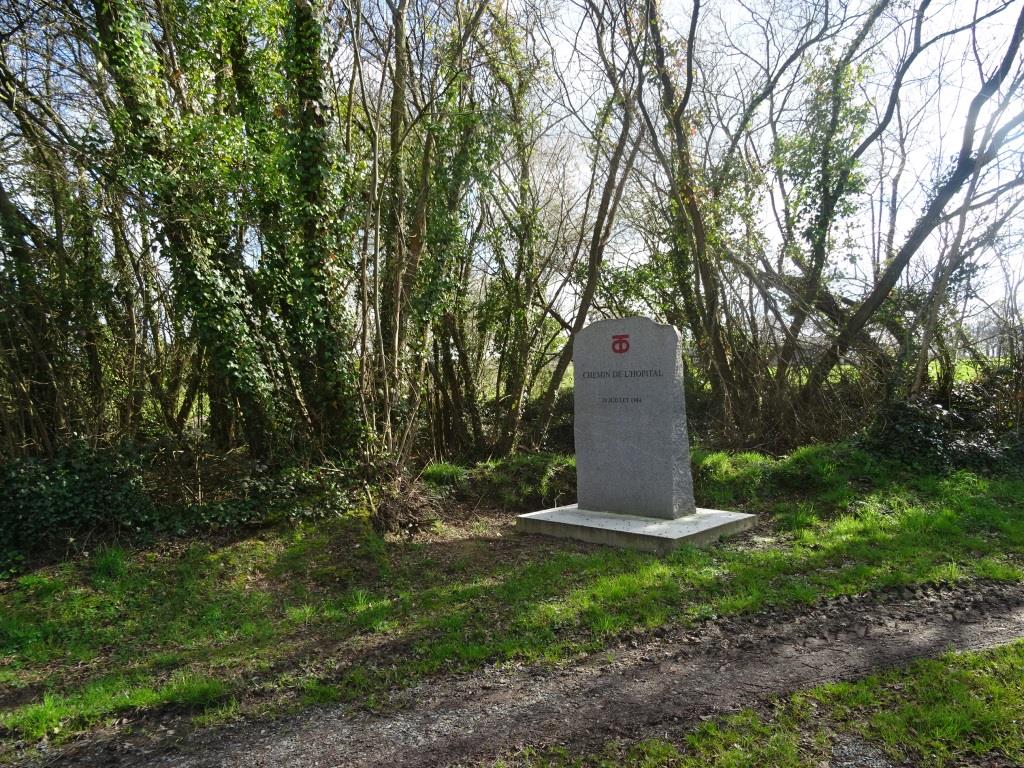 Two similar markers can be found at the site. The first is located just west of the intersection of La Montagne (D24) and Les Milleries (D301) in a roadside clearing, while the second can be found approximately .4 miles (.6 km) northeast near La Doderie. The two steles are connected by an unmarked road known as the "Chemin de l’Hôpital" (Hospital Way). Marker