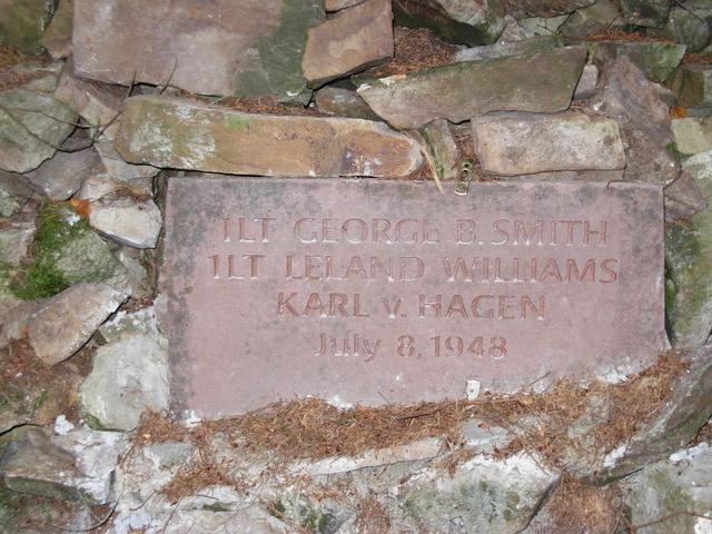 The pile of stones on the Steinkopf (570m) marks the location of the crash. Both Smith and Williams were veterans of WW2 and Hagen a US DoD civilian employed as a photographer.
