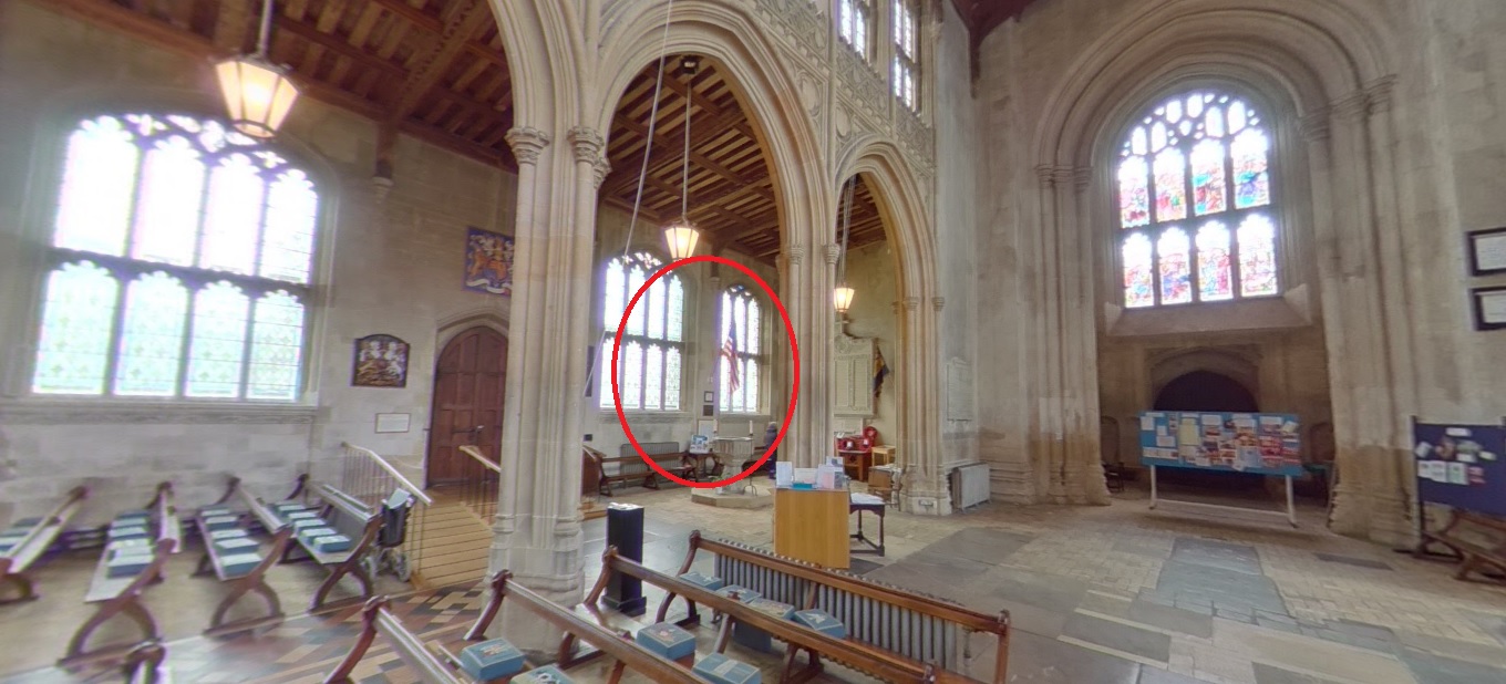 Affixed on the inside wall at the south-east side of the church below the The Flag of the US certificate and the 487th Bomb Group plaques.