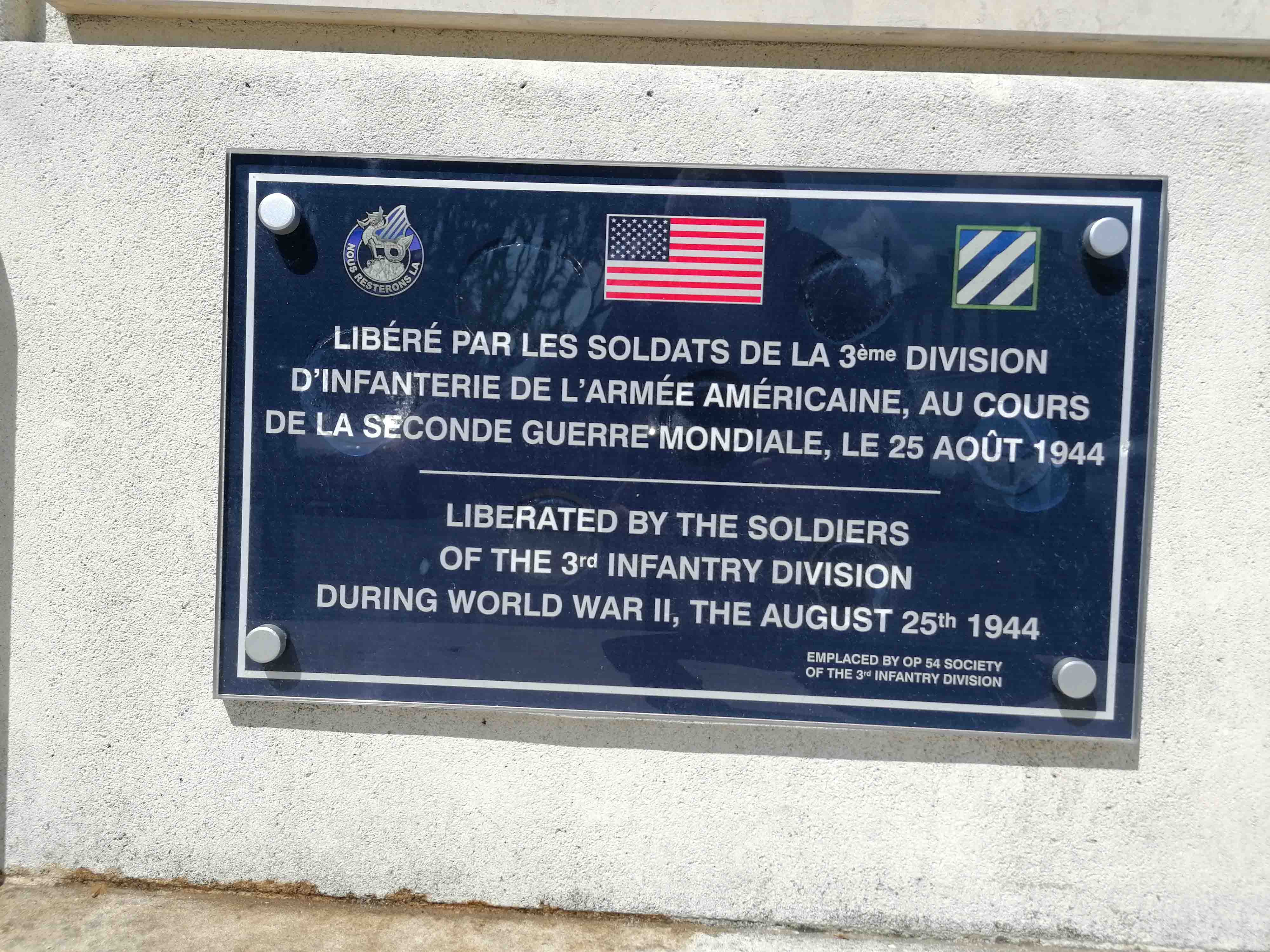 LIBÉRÉ PAR LES SOLDATS DE LA 3ème DIVISION D'INFANTERIE DE L'ARMÉE AMÉRICAINE, AU COURS DE LA SECONDE GUERRE MONDIALE, LE 25 AOÛT 1944