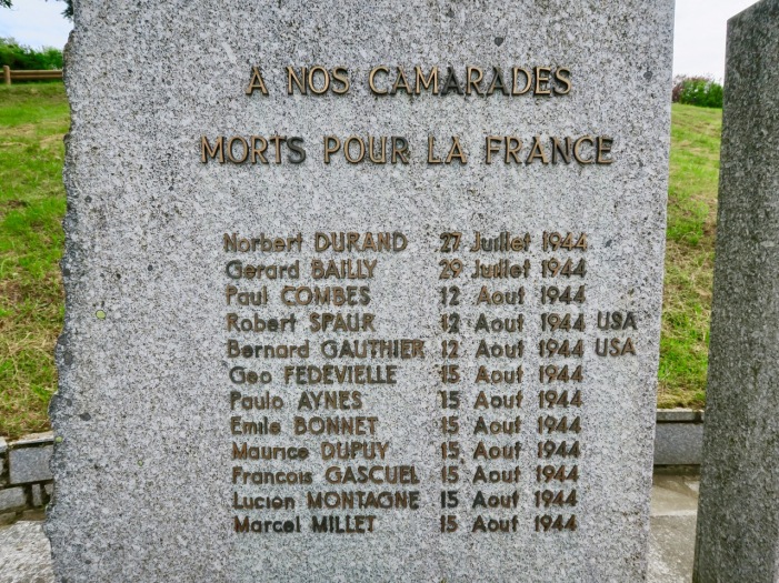 A large, parabolic stone monument that is split in the center forming the Lorraine Cross. The monument is inscribed in French and lists 12 names of the Resistance Fighters including Bernard Gautier and Robert Spaur, of the OSS Operations Group PAT, who were killed in combat in the village on August 12, 1944. There is another memorial nearby honoring just Bernard Gautier and Robert Spaur on the site where they lost their lives. Link: https://www.uswarmemorials.org/html/site_details.php?SiteID=1885&keyword=le%20rialet