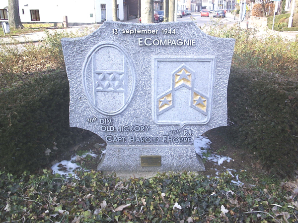 The memorial remembers the liberation of Heer (Maastricht) by E Company, 177th Infantry Regiment, 30th Infantry ”Old Hickory” Division on September 13, 1944. E Company was lead by Captain Harold Hoppe.