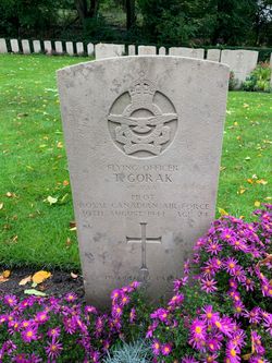Flying Officer Theodore Gorak was born in 1920 in Ohio. He joined the Royal Canadian Air Force and served with the 103rd Bombing Squadron. He was killed on a bombing run over Stettin (now Szeczin, Poland) on August 30, 1944.