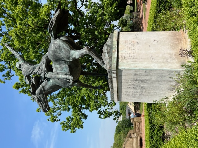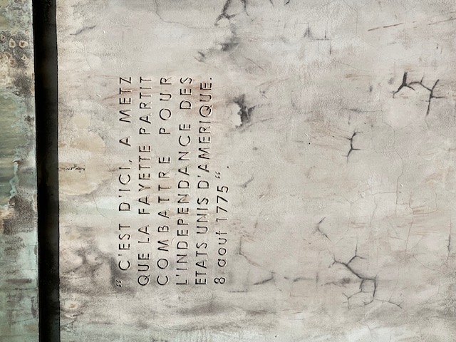 On the very place where Lafayette took the decision to join the cause of American independence, at the Governor’s Palace in Metz, an equestrian statue by the American sculptor Paul Wayland Bartlett (a pupil of Frémiet) was inaugurated in 1920. This statue was torn down in World War II. A new equestrian statue by Messin Claude Goutin replaced the one in Metz in 2004. The Association of the Knights of Columbus sponsored this truly lively statue of the young Lafayette ‘to commemorate the fraternal participation of France to the foundation of the United States’. The snail on the pedestal may be a reference to the tortoise on the pedestal of the Lafayette statue in Hartford in the US.