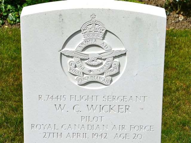Flight Sergeant 'Wick' Wicker lost his life in April 1942 when his Eagle 133 Squadron's Supermarine Spitfire (#BM264) Vb aircraft was shot down by the enemy, crashing in the sea near Dover.