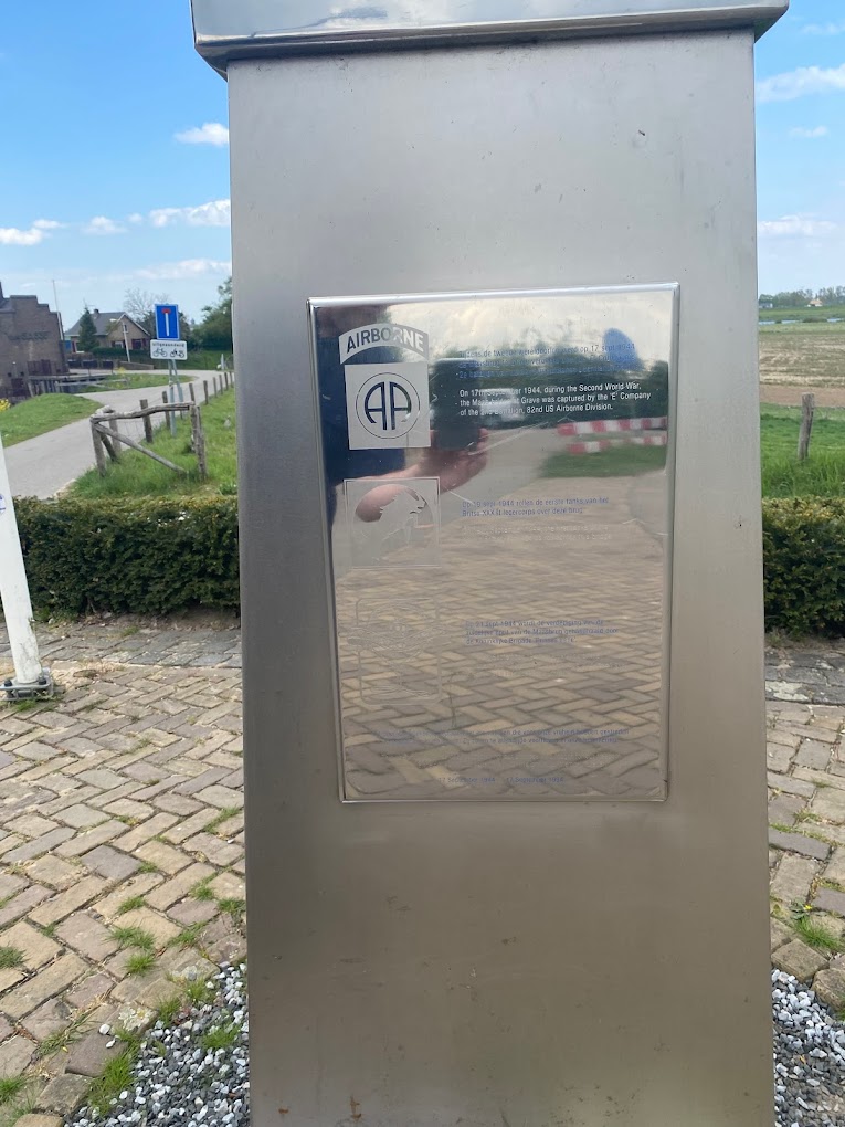 The memorial remembers the 82nd Airborne Division operations in the area during Operation "Market Garden in September 1944, specially the capture of Bridge 11 over the Maas River.