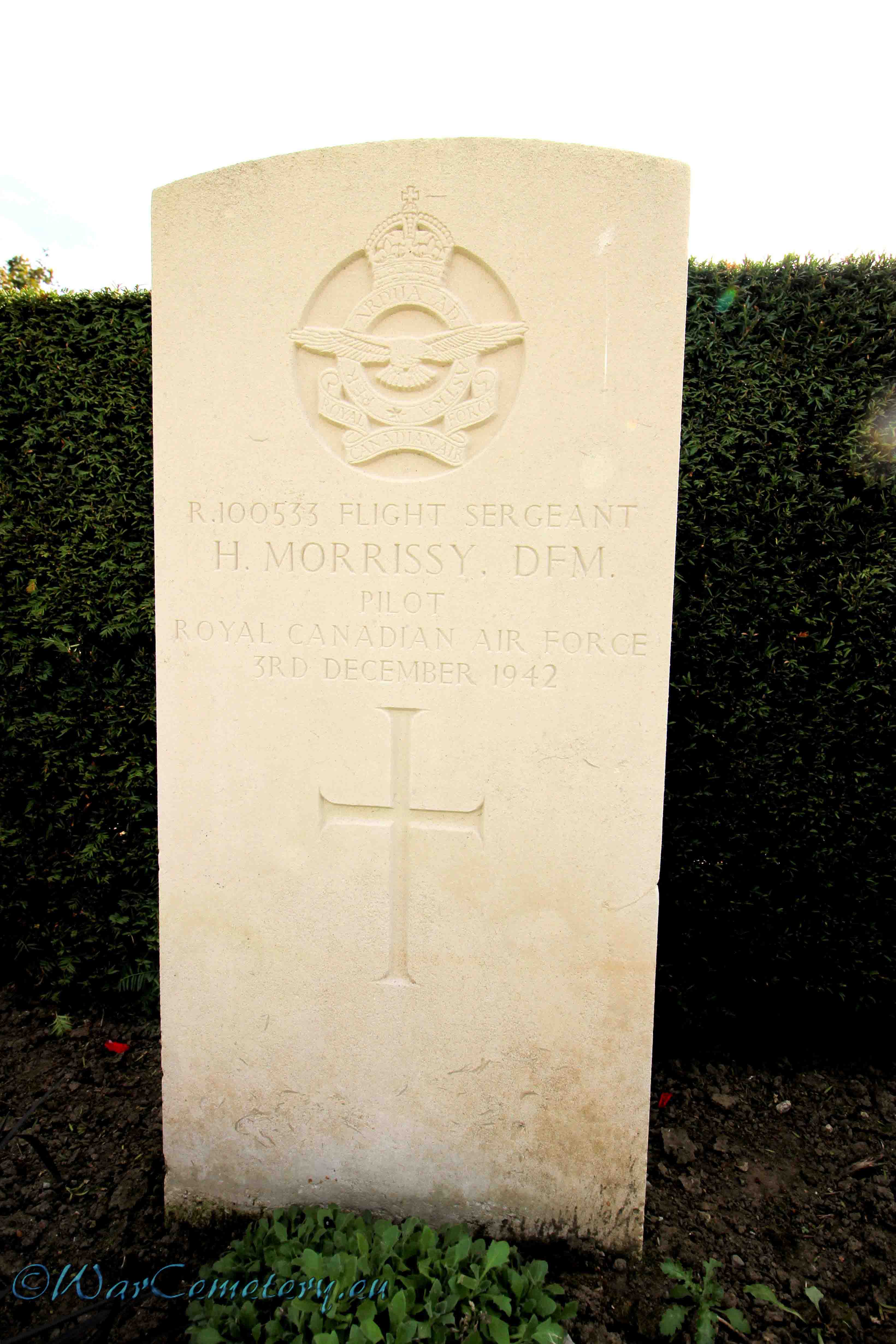 An inscribed Commonwealth War Graves Commission (CWGC) memorial headstone.