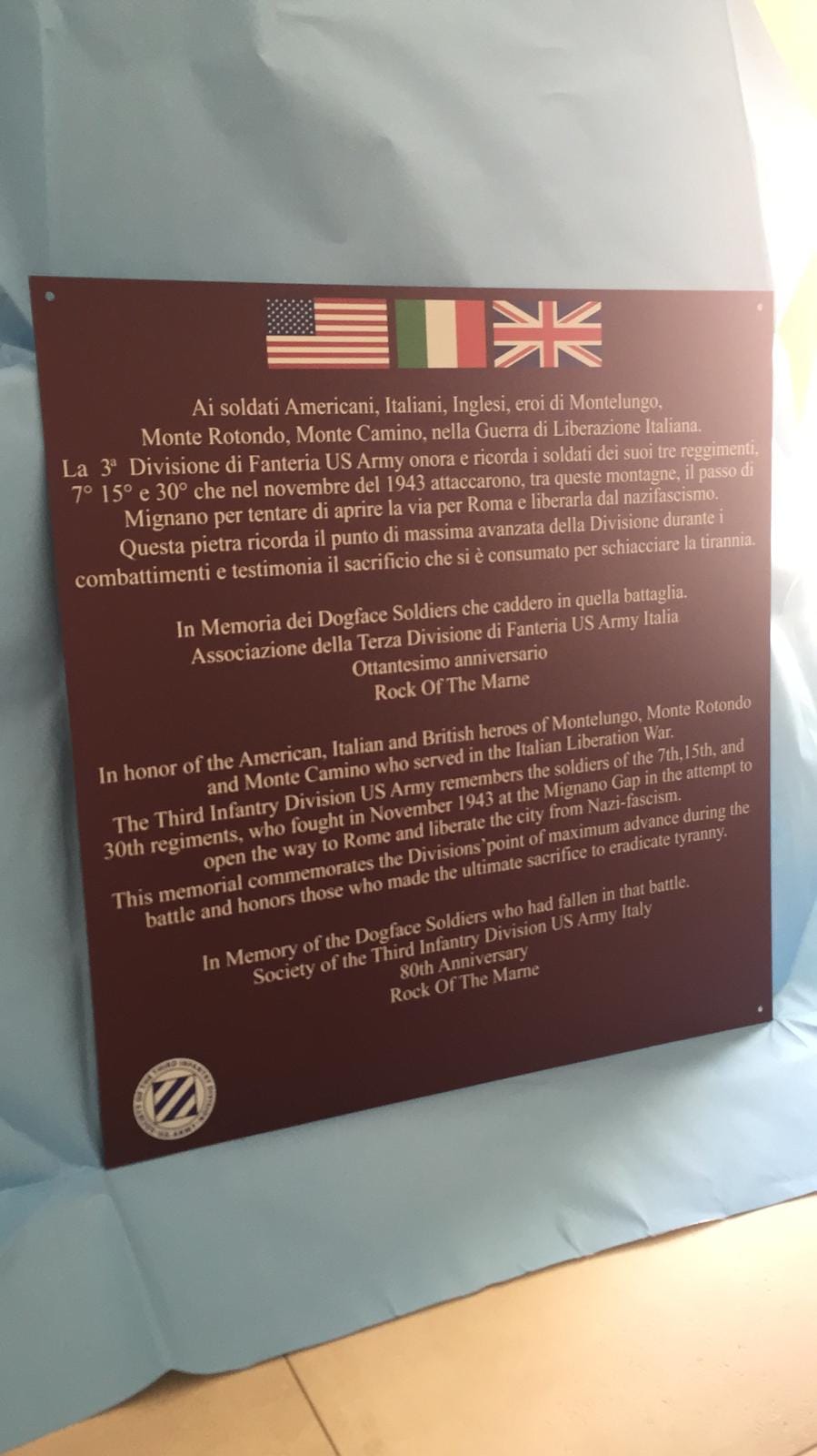 The Third Infantry Division US Army remembers the soldiers of the 7th, 15th and 30th Infantry Regiments, who in November 1943 fought in the Mignano Gap in the attempt to open the way to Rome and liberate it from Nazi-facism.