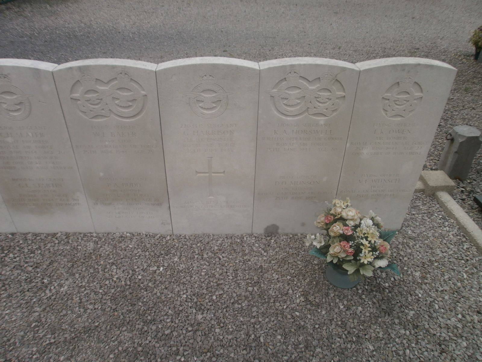 An inscribed Commonwealth War Graves Commission (CWGC) memorial headstone.