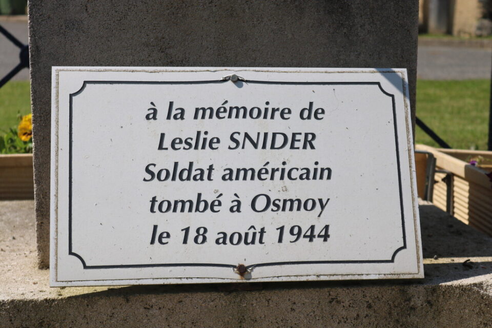 On the morning of August 18, 1944, the American troops whose objective was to reach Épône were stopped in their progress by a German convoy in the fields between Orgerus and Osmoy. After an exchange of fire, Corporal Snider's squadron was forced to flee, abandoning a vehicle on the spot. The clash resulted in five deaths: three German soldiers and two Americans, including Corporal Snider.