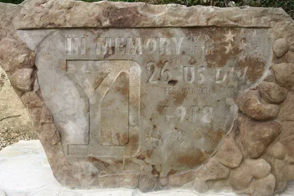The monument remembers the 26th Infantry Division that fought here at the Froidmonet Quarry in February/March 1918. Froidmont Quarry was part of the French Chemin des Dames battle sector.