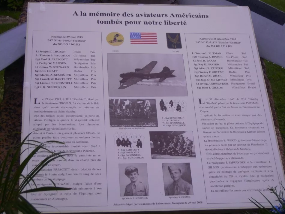 Le 29 mai 1943, le B17 "Yardbird" piloté par le lieutemant TROJAN, fut victime de la flak alors qu'il venait d'accomplir sa mission de bombardement sur Saint-Nazaire.