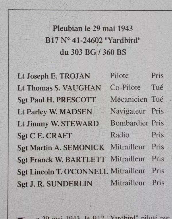 On May 29, 1943, the B17 "Yardbird", piloted by TROJAN, fell victim to the flak while accomplishing its bombing mission over Saint-Nazaire.