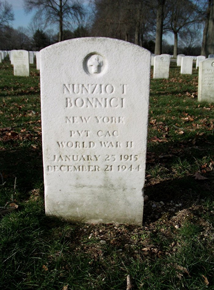 Nunzio T. Bonnici was born on January 25, 1915. He served in the U.S. Army during World War II as a Private in the 1st Infantry Division. He died on December 21, 1944 at the age of 29 and is now buried in Long Island National Cemetery, East Farmingdale, Suffolk County, New York, USA.