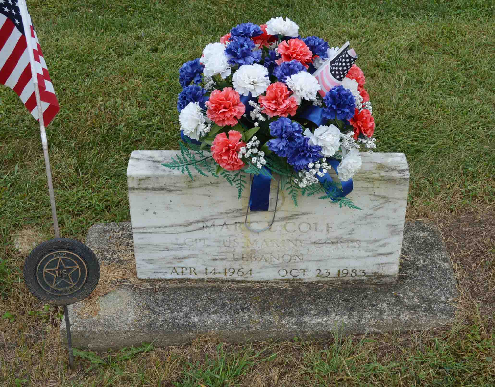 Marc L. Cole was born on April 14, 1964 in West Milton, Miami County, Ohio. He was the son of Robert L. Cole and Sandra Kay Hull Cole. marc served in the United States Marine Corps as a Private First Class. He was killed in the terrorist bombing of the United States Marine barracks. In the early morning hours of 23 Oct. 1983, a truck loaded with explosives crashed through the security perimeter of the USMC Barracks in Beirut, Lebanon. In the explosion that followed, 241 US Military personnel were killed and 80 serious wounded. He is now buried in the Riverside Cemetery, West Milton, Miami County, Ohio, USA. A memorial highway was named after him in West Milton, Ohio.