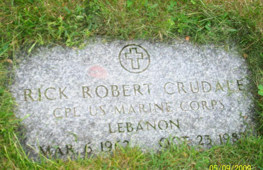 Rick Robert Crudale was born on March 6, 1962 in Providence, Providence County, Rhode Island. He served in the United States Marine Corps as a Corporal. Rick was killed in the terrorist bombing of the United States Marine barracks. In the early morning hours of 23 Oct. 1983, a truck loaded with explosives crashed through the security perimeter of the USMC Barracks in Beirut, Lebanon. In the explosion that followed, 241 US Military personnel were killed and 80 serious wounded. He is now buried in the Rhode Island Veterans Memorial Cemetery, Exeter, Washington County, Rhode Island, USA. His name is commemorated on the Beirut monument, on the grounds of the US Embassy in Lebanon and ranked as a Lance Corporal.