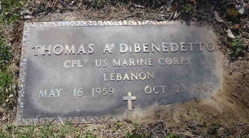 Thomas Alan Dibenedetto was born on May 16, 1959 in Windham, Windham County, Connecticut. He was a graduate of the E. O. Smith High School in Storrs and attended Thames Valley State Technical College in Norwich before joining the Marine Corps in April 1982, he served as a Corporal. He was sent to Beirut in June for what was to have been a six-month tour of duty. Thomas was killed in the terrorist bombing of the United States Marine barracks. In the early morning hours of 23 Oct. 1983, a truck loaded with explosives crashed through the security perimeter of the USMC Barracks in Beirut, Lebanon. In the explosion that followed, 241 US Military personnel were killed and 80 serious wounded. He is now buried in the Storr's Cemetery (New), Storrs, Tolland County, Connecticut, USA.