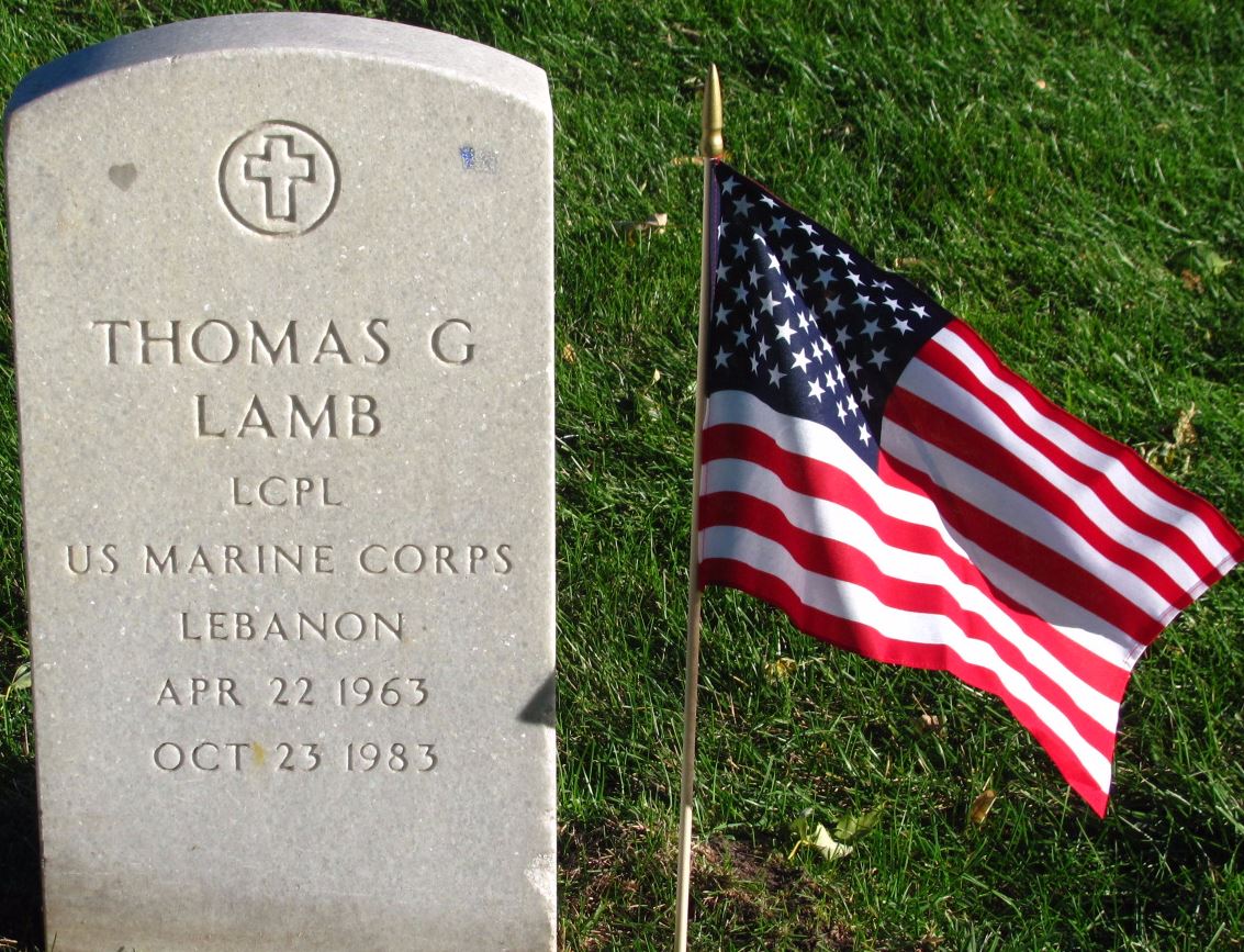 Thomas Gregory Lamb was born on April 22, 1963 in Coon Rapids, Anoka County, Minnesota. He served in the United States Marine Corps as a Lance Corporal. Thomas was killed in the terrorist bombing of the United States Marine barracks. In the early morning hours of 23 Oct. 1983, a truck loaded with explosives crashed through the security perimeter of the USMC Barracks in Beirut, Lebanon. In the explosion that followed, 241 US Military personnel were killed and 80 serious wounded. He is now buried in the Fort Snelling National Cemetery, Minneapolis, Hennepin County, Minnesota, USA.