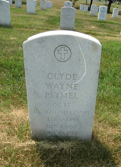 Clyde Wayne Plymel was born on December 8, 1958 in Rockledge, Brevard County, Florida. he served in the United States Marine Corps as a First Lieutenant. Clyde was killed in the terrorist bombing of the United States Marine barracks. In the early morning hours of 23 Oct. 1983, a truck loaded with explosives crashed through the security perimeter of the USMC Barracks in Beirut, Lebanon. In the explosion that followed, 241 US Military personnel were killed and 80 serious wounded. He is now buried in the Arlington National Cemetery, Arlington, Arlington County, Virginia, USA.