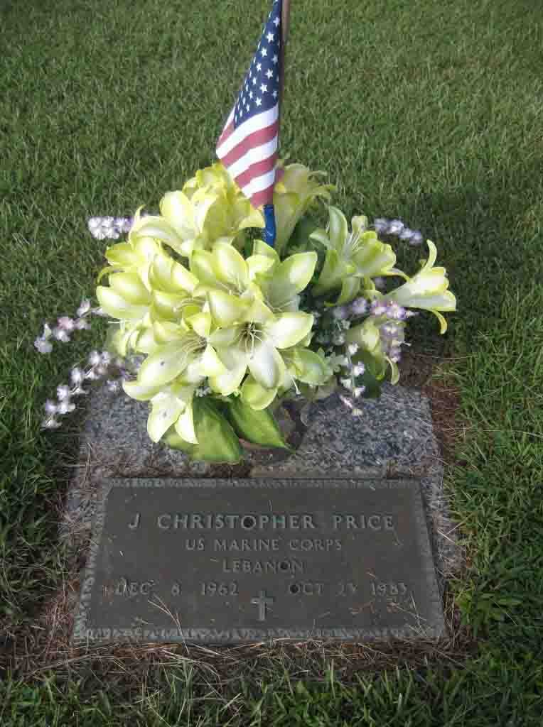 James Christopher Price was born on December 8, 1962 in Attalla, Etowah County, Alabama. He was the son of John Robert Price and Betty Lou Basson Price. James served in the United States Marine Corps as a Private First Class. He was killed in the terrorist bombing of the United States Marine barracks. In the early morning hours of 23 Oct. 1983, a truck loaded with explosives crashed through the security perimeter of the USMC Barracks in Beirut, Lebanon. In the explosion that followed, 241 US Military personnel were killed and 80 serious wounded. He is now buried in the Rainbow Memorial Park, Rainbow City, Etowah County, Alabama, USA.