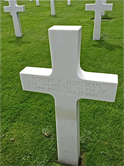 Robert died in the "Line of Duty" on February 27, 1945, when his P-51 collided, approx. one mile north of Westleton, England, with P-51B #42-106447 flown by Lt. Ralph E. Eisert, Jr. of the 364th Fighter Squadron, 357th Fighter Group. Both pilots was killed in the collision. 2LT Hoffman is buried now in the Cambridge American Cemetery, Cambridge, United Kingdom.