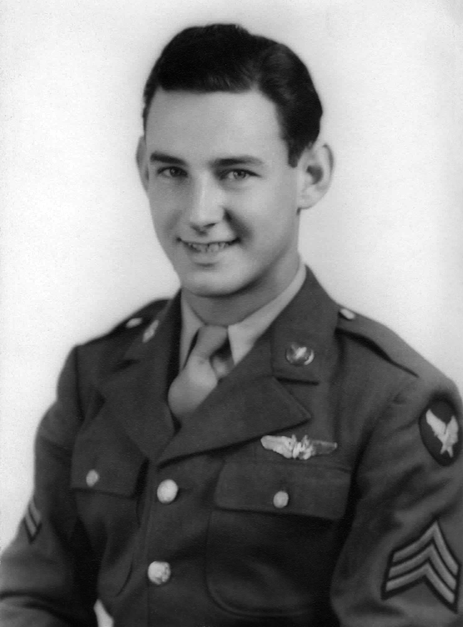 He went first to Miami Beach, Florida for basic training. From March to August 1943 he was assigned to Scott Field, Illinois, where he completed Army Air Forces radio operator training. From August to September 1943 he trained in aerial gunnery at Tyndall Field in Panama City, Florida. His next stop was the Army Air Base at Camp Kearns near Salt Lake City, Utah, where he was assigned as radio operator on the heavy bomber crew of Lt Joseph A. Duncan. The Duncan crew was assigned to the 839th Bomb Squadron of the 487th Bomb Group at Alamogordo Army Air Base, New Mexico. There they completed B-24 crew training and deployed with the Group to England in March 1944. There is a photo of the Joseph A. Duncan crew that was taken during training in the States. They flew B-24H 42-52591 from Alamogordo, New Mexico to Lavenham, England via the southern Atlantic ferry routea journey of about 10,000 milesand arrived in England by mid-April 1944. The 487th Bomb Group was based at Army Air Forces Station 137 near Lavenham, Suffolk, England, and was part of the 8th U.S. Army Air Force in Europe.