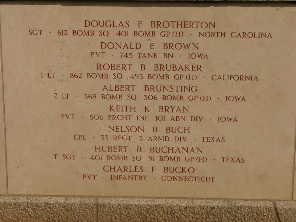 1Lt Brubaker was declared "Missing in Action" on this flight. His name is memorialized on the Tablets of the Missing, Brittany American Cemetery, Montjoie Saint Martin, France.