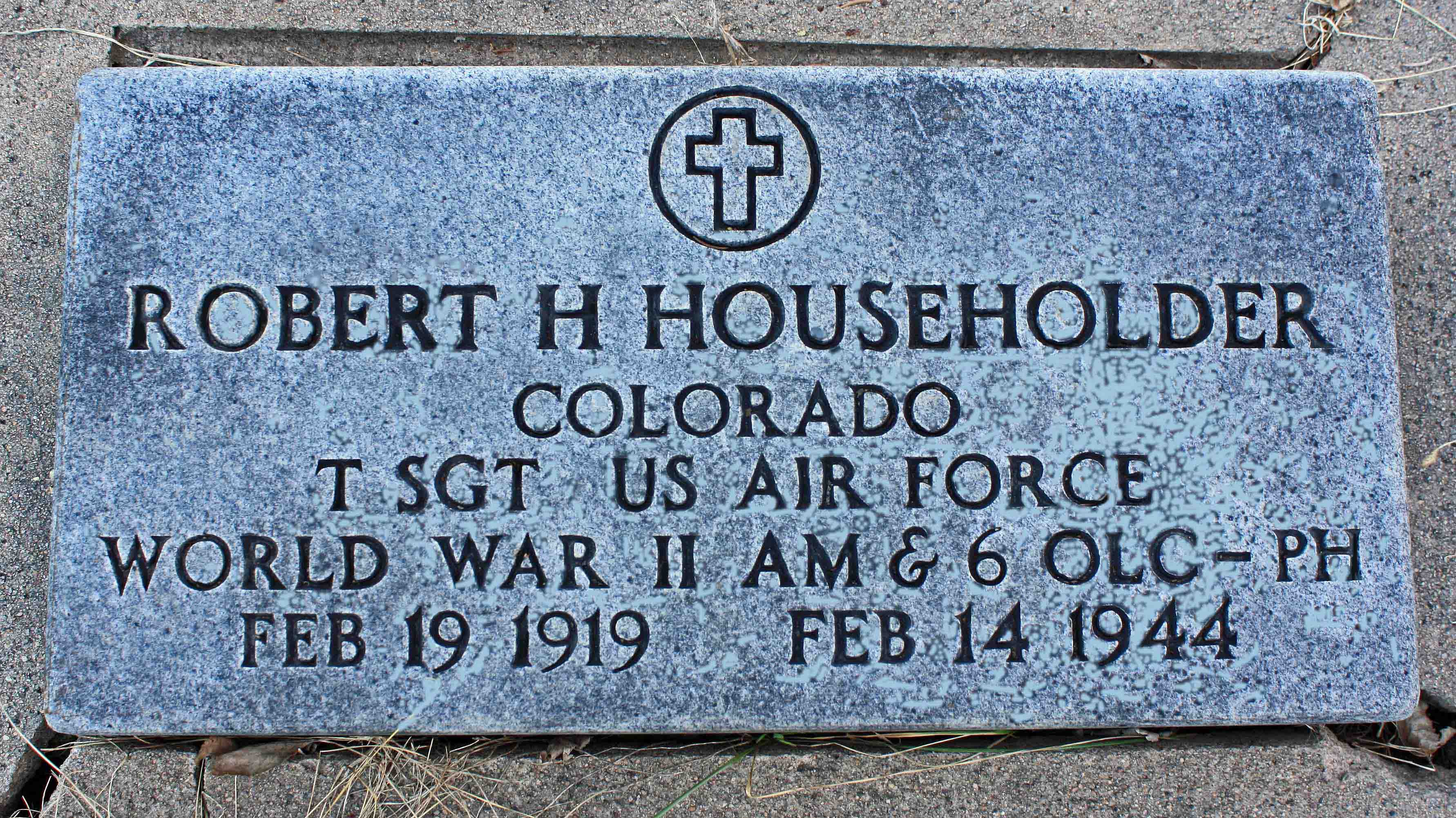 TSgt Householder was originally declared "Missing In Action," along with two other airmen. His remains have been recovered and were interred in the Grandview Cemetery, Fort Collins, Larimer County, Colorado, USA. His name is permanently inscribed on the Tablets of the Missing at the Florence American Cemetery in Italy.