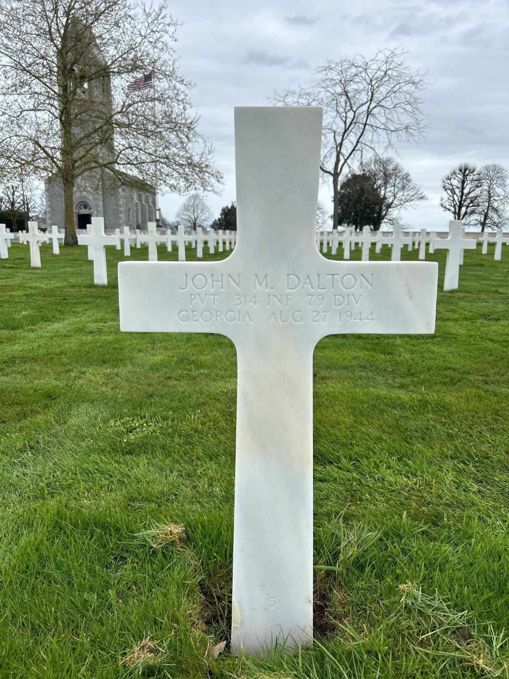 John served in the 314th Infantry Regiment, 79th Infantry Division, as a Private during World War II. He was Killed in Action on August 27, 1944, during the liberation of Vexin, France, and is now buried in the Brittany American Cemetery, Montjoie Saint Martin, France.