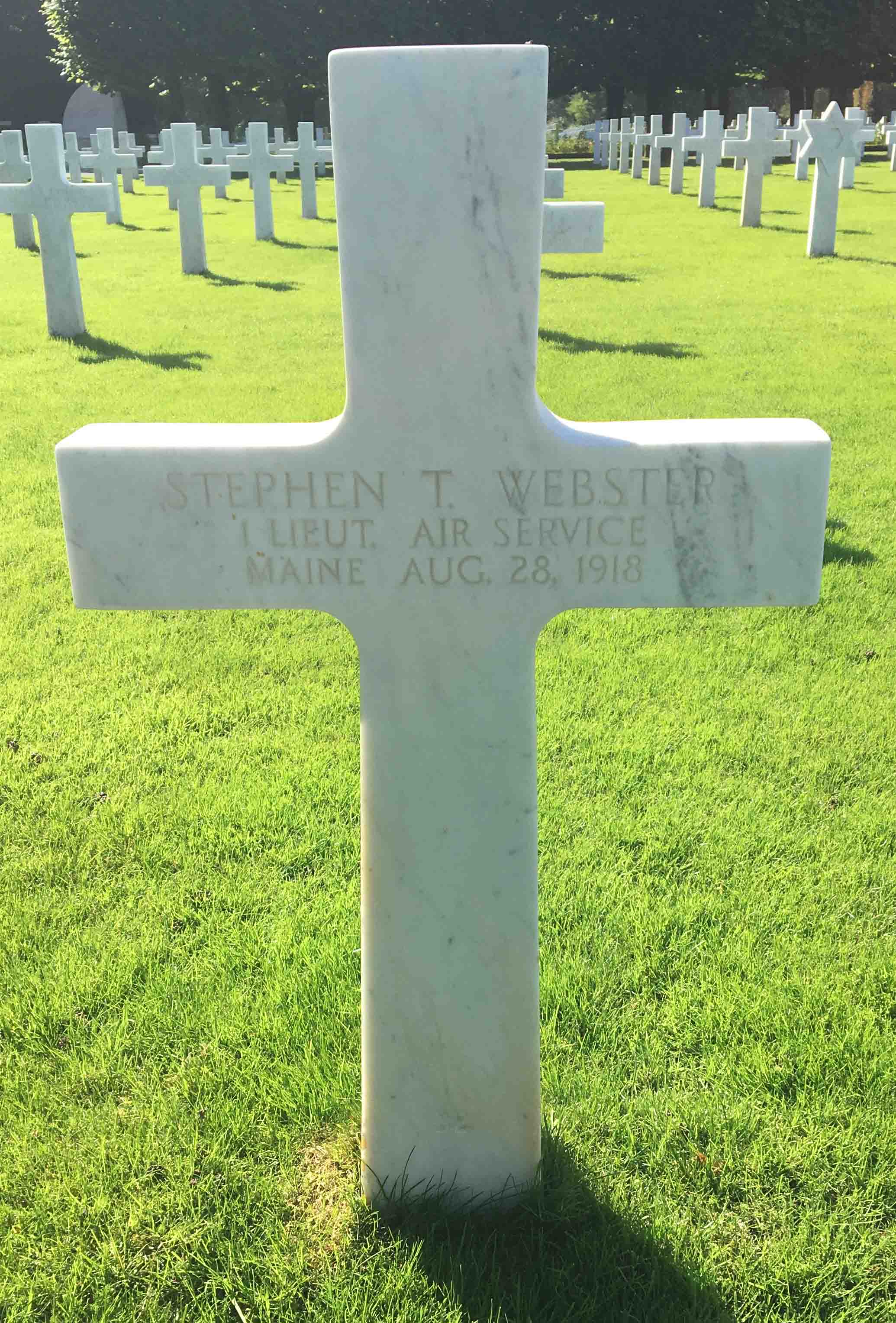 Stephen served in the Air Service as a First Lieutenant during World War I. He died in France on August 28, 1918, and is now buried in the St. Mihiel American Cemetery, Thiaucourt, France. He has a cenotaph located in the Wall Cemetery in Maine. He was one of the 171 American servicemen who trained at the Third Aviation Instruction Center in France and died between 1917-1919.
