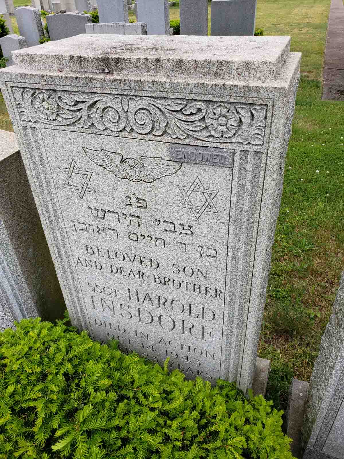 Harold served in the 366th Bomber Squadron, 305th Bomb Group, Heavy, as a Staff Sergeant and Ball Turret Gunner on the B-17 #42-3195 during World War II. He was Killed in Action on October 14, 1943, when his airplane was shot down by a German fighter plane Ofw. Heckmann 1./JG1 and crashed at Waldenrath, Germany. He is now buried in the Beth-El Cemetery, Paramus, Bergen County, New Jersey, USA.