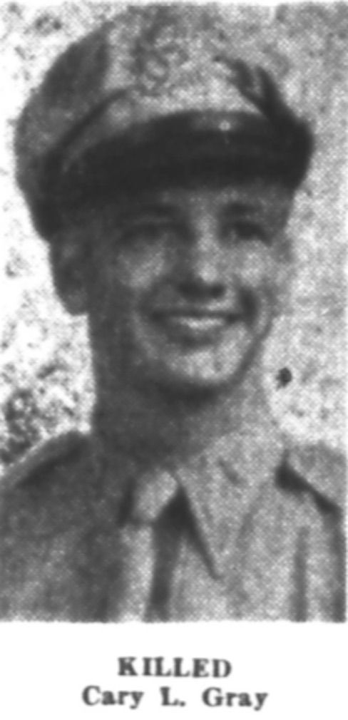 2nd Lt Cary L. Gray, pilot of the P-47 Thunderbolt 42-8544, took off from station 417 Ashford, UK on a reconnaissance mission over Lessay. While flying at 4500 feet, the formation came under AA fire at 2030. The planes scattered to avoid getting hit, but Gray went down. One of his wingmates, Lt Funk, and a French farmer milking his cows, Mr. Lebunetel, saw him bail out safely. However, once on the ground, he was shot execution-style by the Germans.