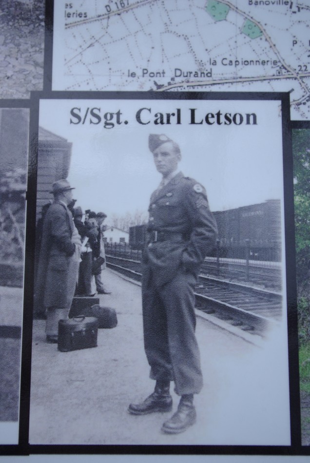 Sgt Carl R. Letson, paratrooper of the 507th PIR/82nd AD, took off from Barkston Heath, Lincolnshire, UK in order to drop over the Amfreville sector. However, coming over the Cherbourg peninsula, the plane was hit by anti-aircraft fire, injuring Pvt Stout, who later died in the crash. The plane lost its formation in the overcast, dipping down to 700 feet to drop the 18 unwounded paratroopers, after which it turned back to England. Letson was later captured by the Germans and sent to Stalag 3C in Alt Drewitz, Brandenburg, Prussia.