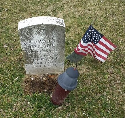 Pvt Edward Dziedzic, paratrooper of the 3/501st PIR’s G Company, took off from station 474 in Welford, UK in the C-47 42-24077 to drop over DZ-C as part of Operation Albany during the Normandy invasion. Their target time was 0120. Their plane was the last of five waves to cross the Cotentin, over air defenses now on full alert. To complicate matters, there were heavy clouds at 1500 feet, gone unreported due to the strict radio silence. Some pilots decided to pull up and find their DZs with the Eureka-Rebecca system, others went low to obtain a visual of their DZs, and a rare few stayed the course through the cloud bank. While approaching DZ-C, flak hit the last three planes, including the 42-24077. The plane crashed in the Norman countryside, killing all aboard.