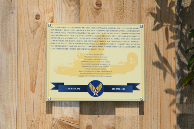 B-24 “Battlin Baby” (42-94989) Crash Memorial Plaque