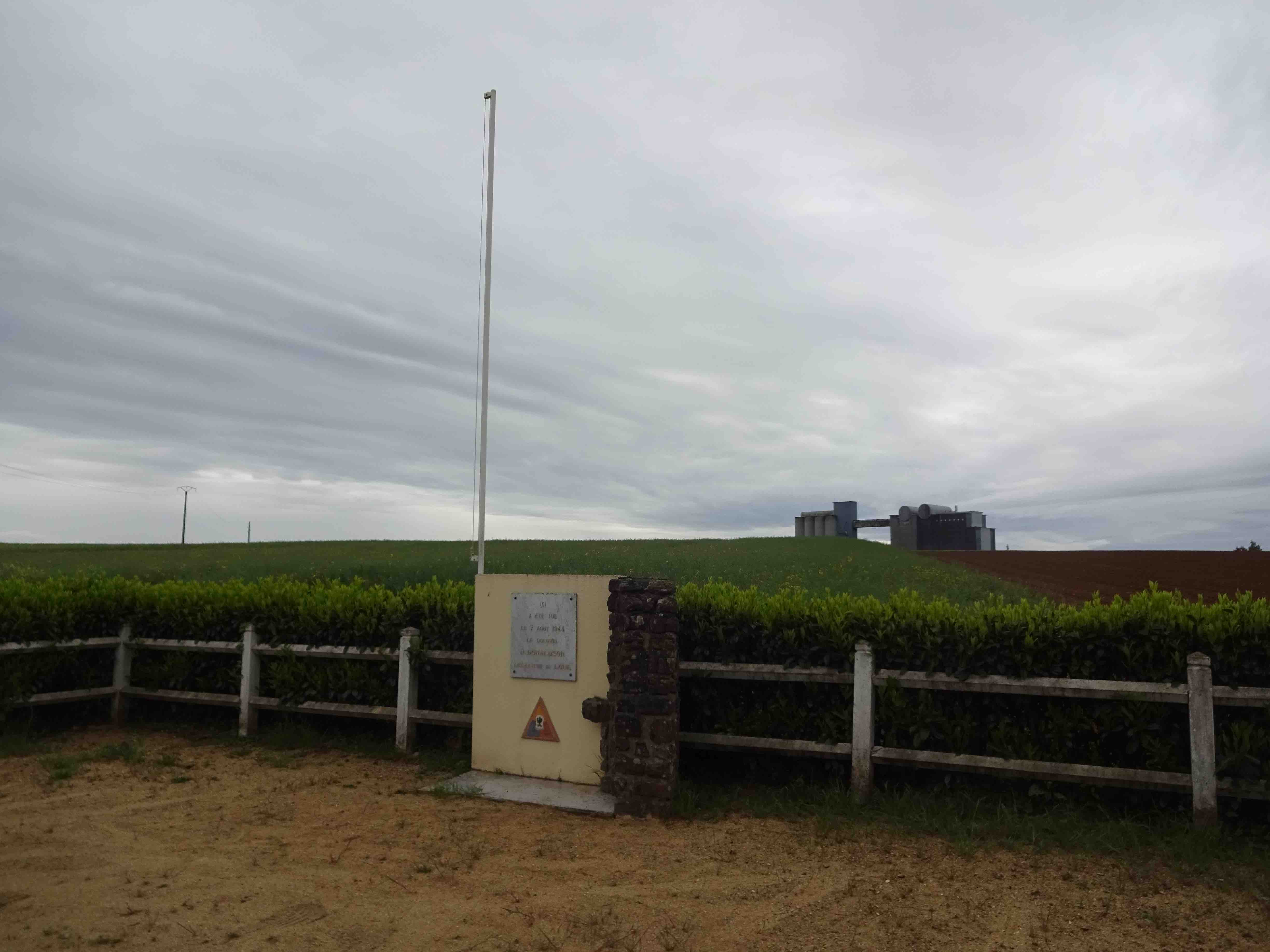 The site consists of a small gravel area just off the side of the road. It is surrounded on three sides by a short hedge. This site features a memorial dedicated to an American Army officer who assisted in the town's liberation.