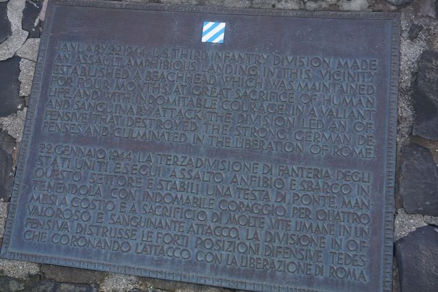 A memorial remembering the 3rd Infantry Division landing site and operations in the 1944 Anzio beachhead.
