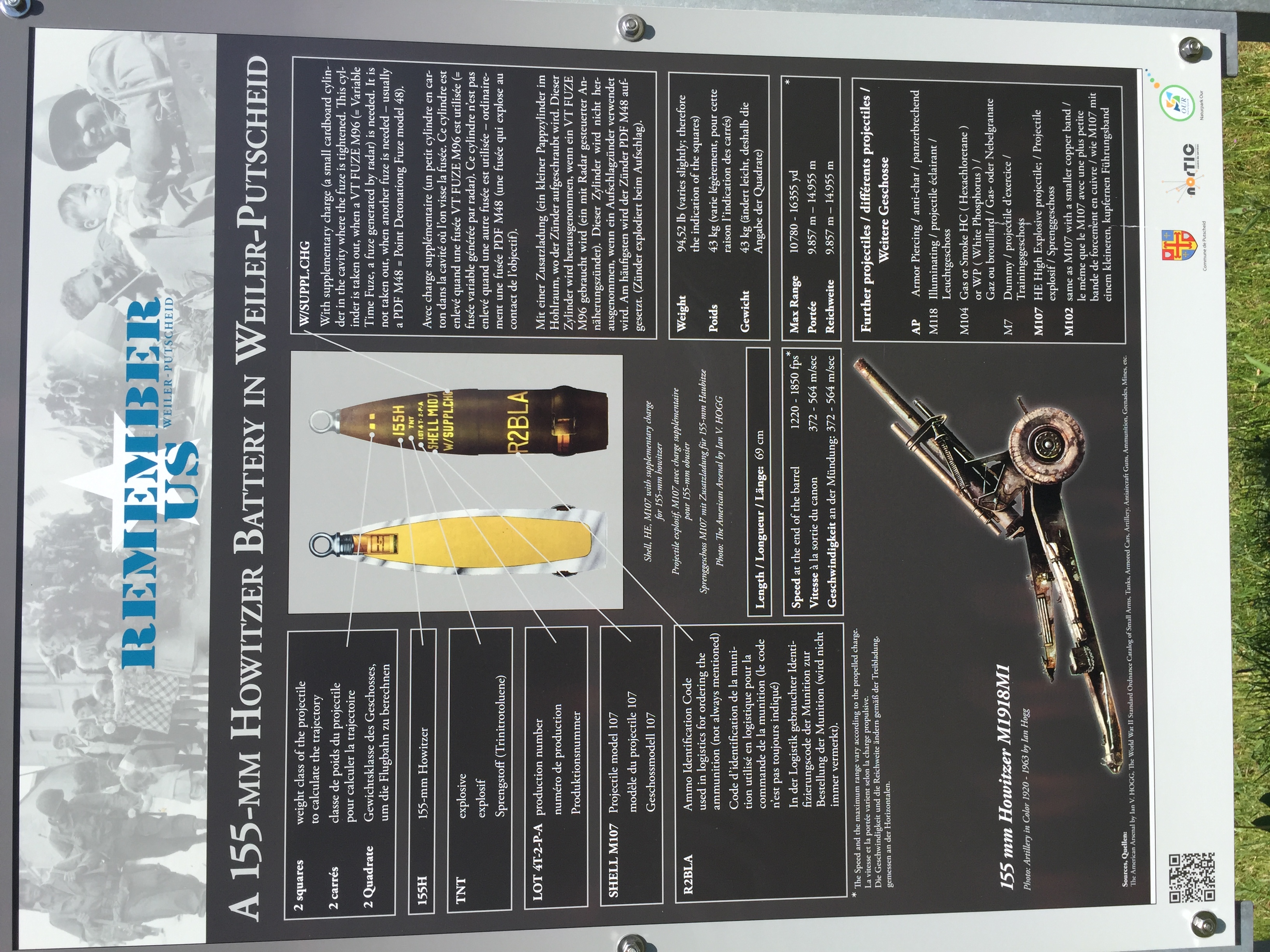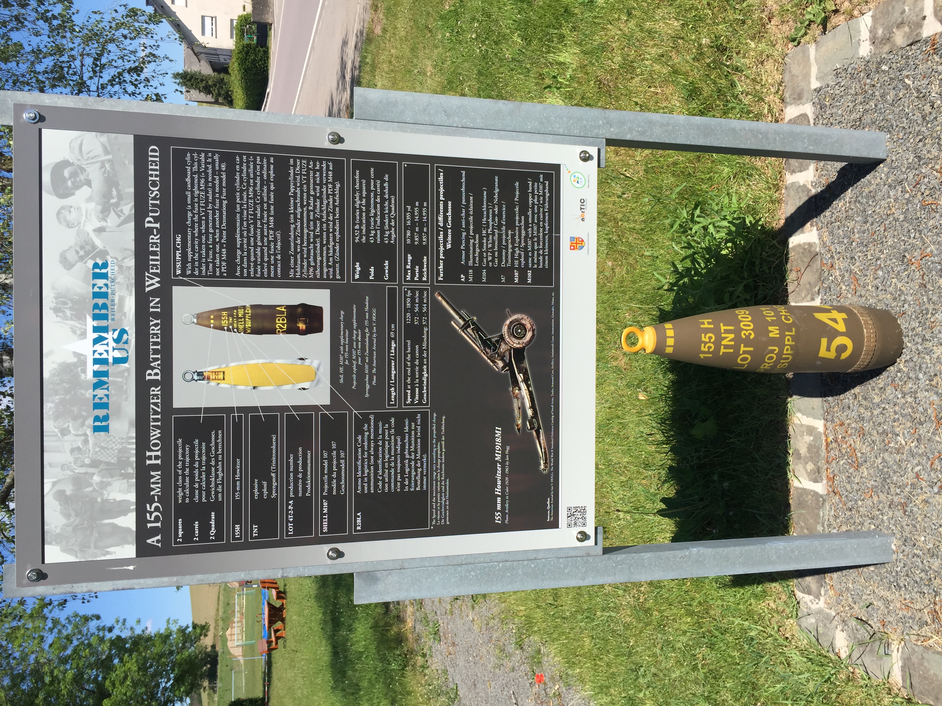 The site includes an Information board and 155 mm Howitzer shell used by the 5th Infantry Division in January 1945.