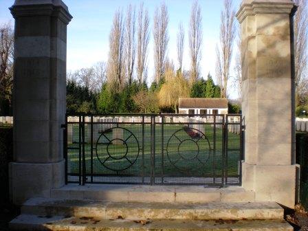In the north NE of Brussels in the district of Evere. Follow the E40 Brussels-Liege road in the direction of Brussels and leave at exit 19, signs to Woluwe and Evere. Follow the sign Evere to the right and continue 500 metres along the avenue des Communautes to the first set of traffic lights. Go straight ahead here and down the avenue Ciceron to turn left around the roundabout at the bottom of the road. The entrance to the Town Cemetery is then on your right. Follow the main avenue through the cemetery as far as you can go and the CWGC plot is on your left.