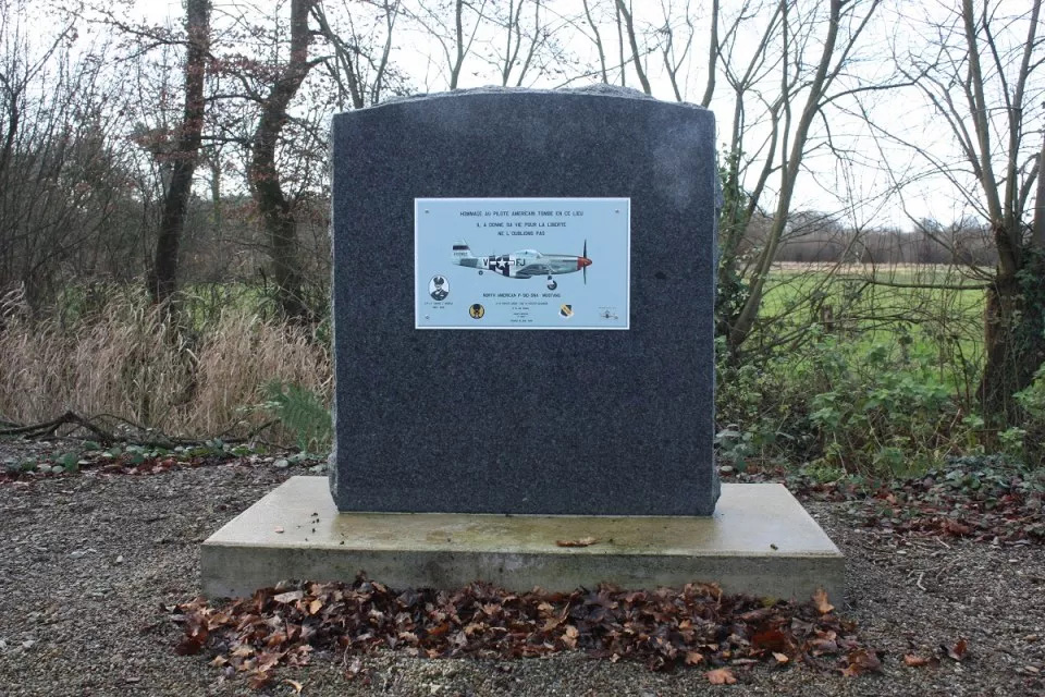 At La Dibois. Take the D80 towards Bonnemain, the stele is positioned on the right, slightly set back from the road, very close to where the P-51 of 2nd Lt Harvey fell. The site is over 5kms south of Baguer-Morvan town center.