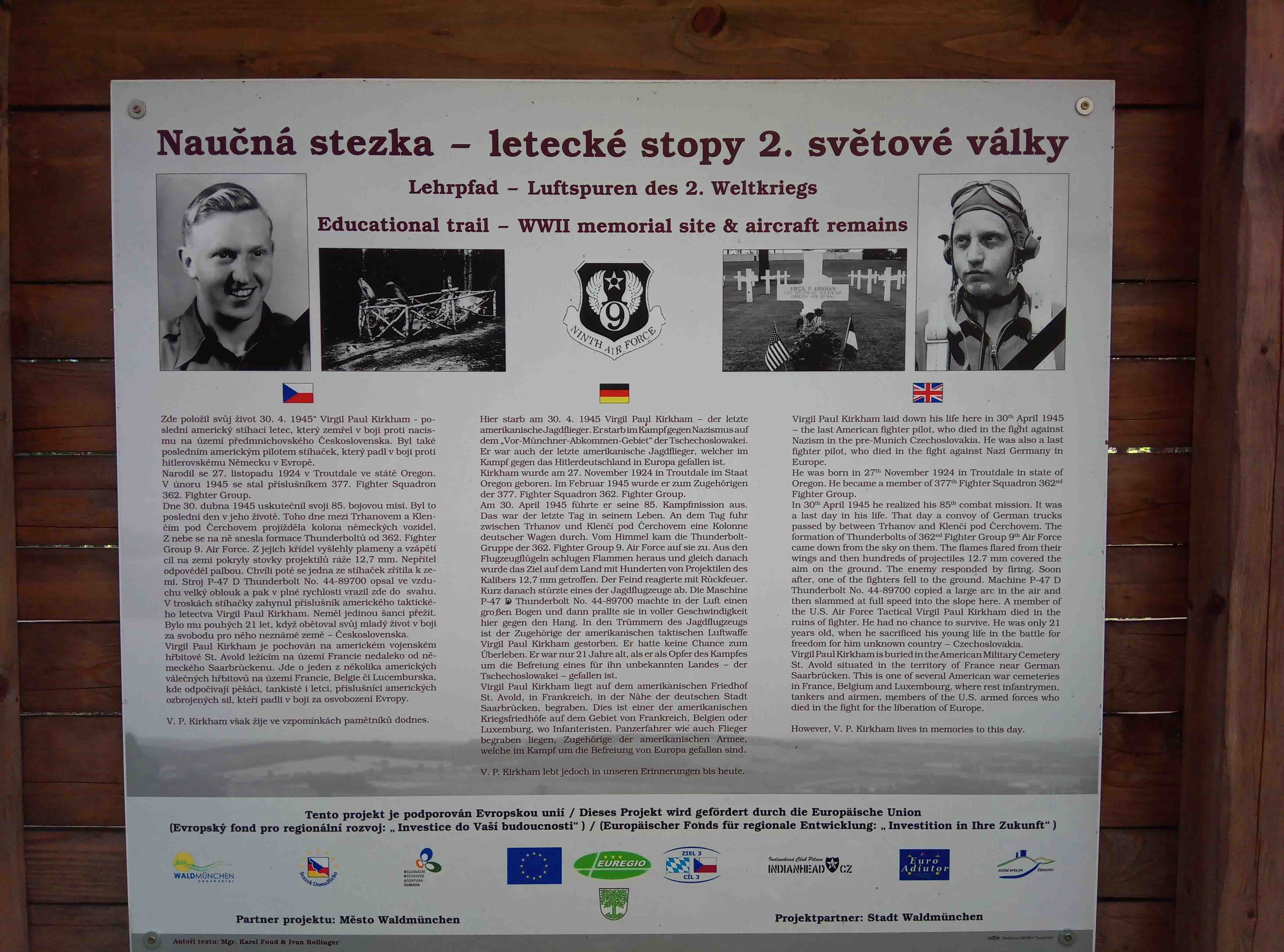 The site includes two memorials which is the crash site of Lt. Virgil P. Kirkham; he was the last recorded American USAAF pilot killed in Europe during WWII.