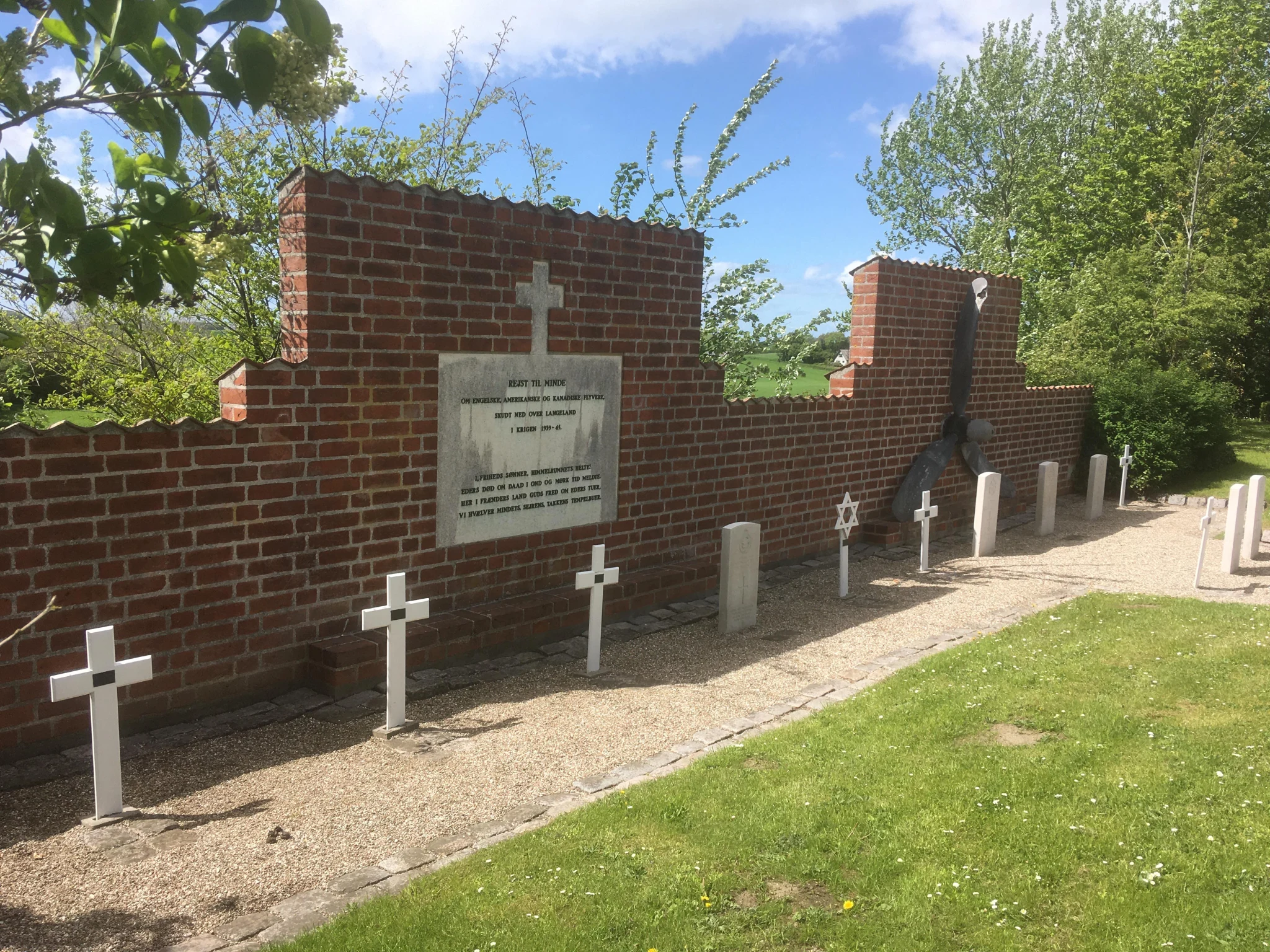 The site includes several memorials: an Isolated Burial (ISOB) of an American KIA while flying with the Canadians; a cenotaph of a B-24 crewman and a memorial to Allied Airmen who fell over Denmark in World War II.