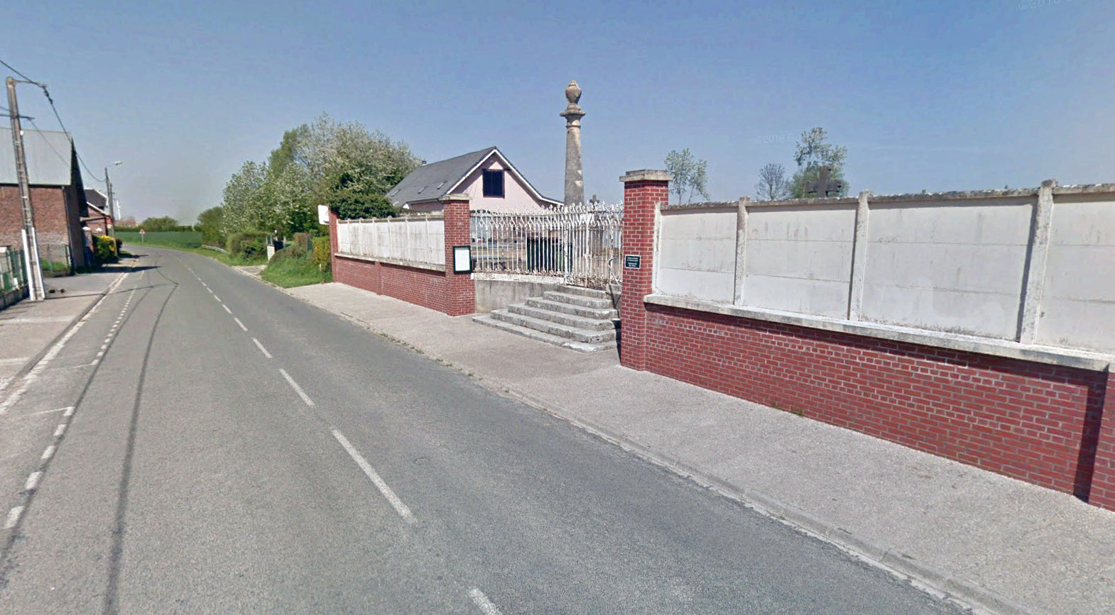 Meharicourt is a village and commune 32 kilometers east-south-east of Amiens and some 7 kilometers south of the road from that town to St. Quentin. The Communal Cemetery is on the north-western side of the village on the road to Rosieres.